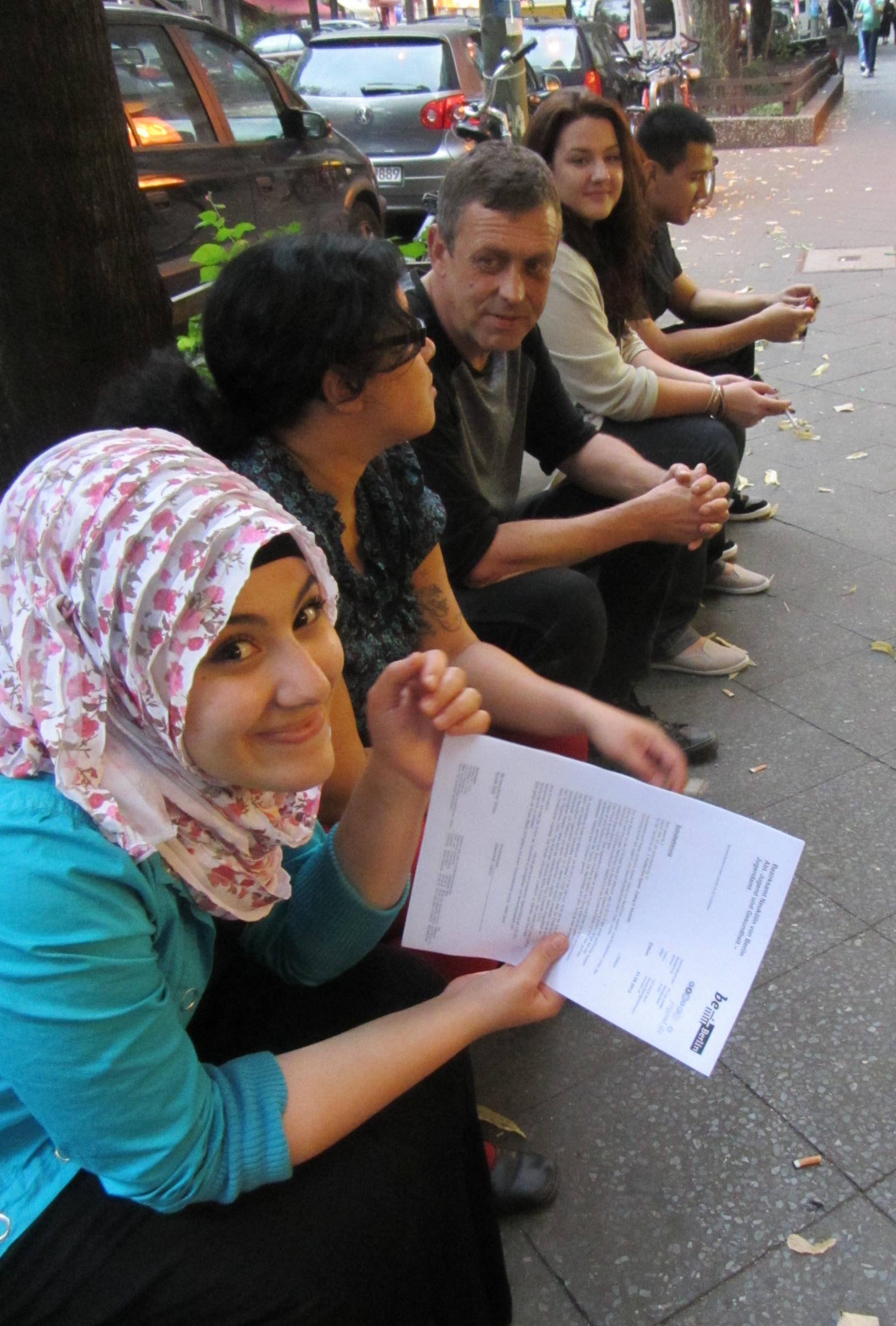 Nachdem Susanne einen kurzen Rückblick auf die letzten Jahre geworfen hatte, wurde musiziert. Adyan spielte ein Geburtstagsständchen auf ihrer Geige (selbst beigebracht, und das bei einem der schwersten Instrumente, die es gibt!) und Linda, auf der Gitarre begleitet von Andi, sang eine Ballade ihrer „sexy Lieblingsband“ No directions. Nach einem gebührenden Applaus für die Drei wurde das Buffet geplündert. Da fast jeder etwas mitgebracht hatte, war das Angebot reichhaltig: Gefüllte Weinblätter, Kräuterquark, Salate aus Couscous, Nudeln und Kartoffeln waren neben Kuchen, Torten und weiteren kleinen Snacks aufgetischt.